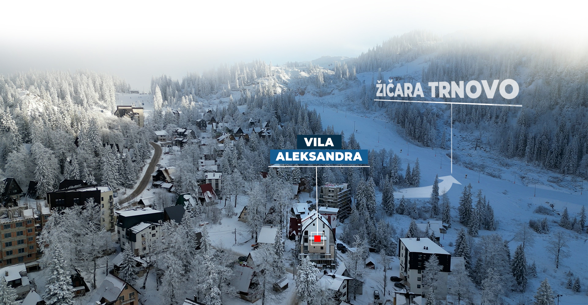 Nalazimo se na jugozapadnoj strani sportsko rekreativnog kompleksa na samo 80 metara od žičare Trnovo